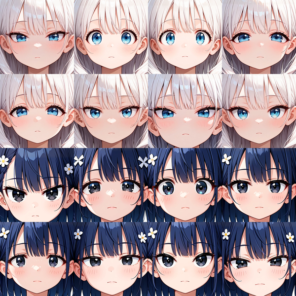 `fang`や`smug`などプロンプトのみを使って出すよりも形状が安定します。