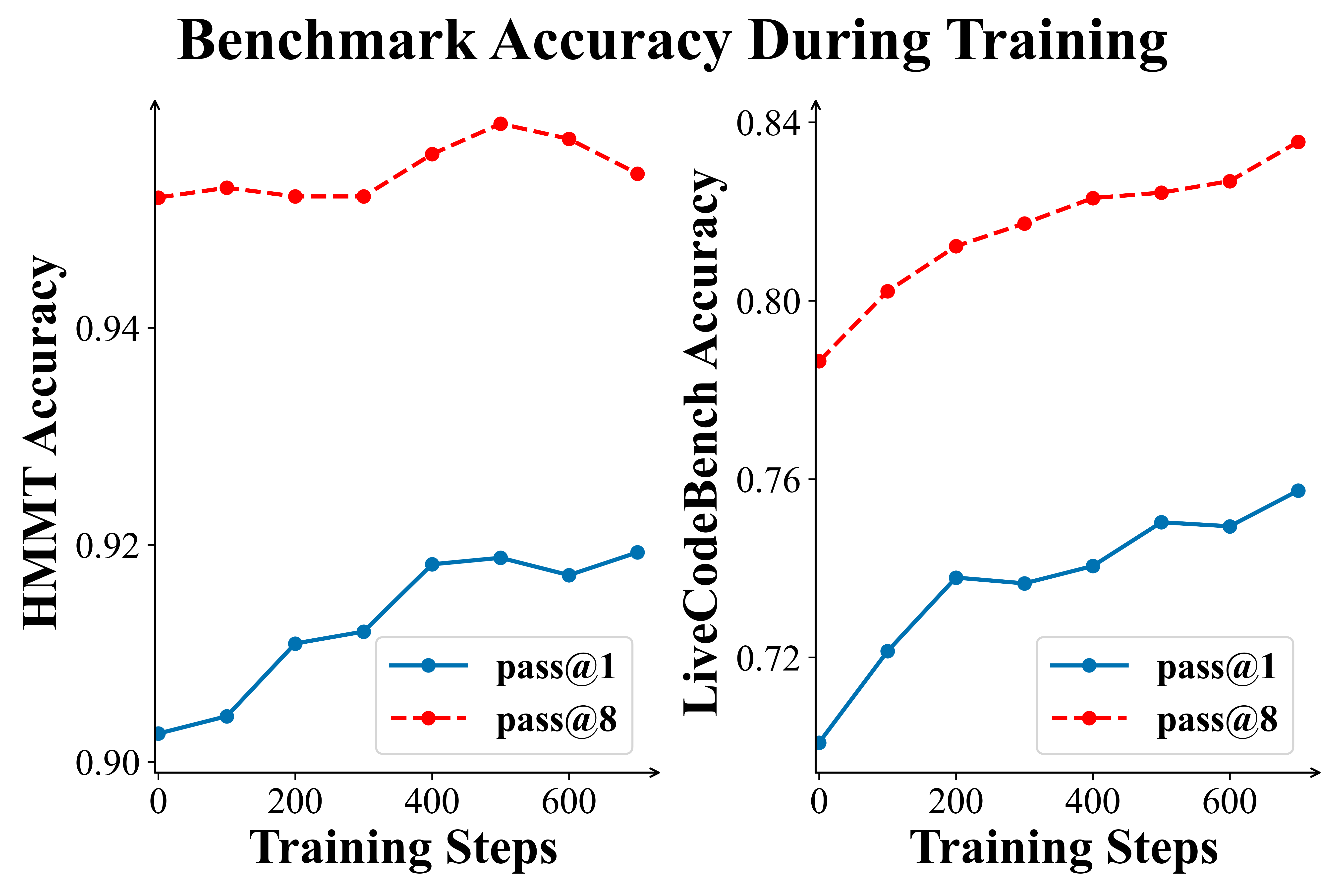 The approach yields strong improvements across diverse domains, and notably pushes reasoning beyond frontier systems in mathematics: an 8B model reaches 94.5% on HMMT 2025, surpassing GPT-5โs 93.2% by scaling effective TTC to roughly two million tokens.